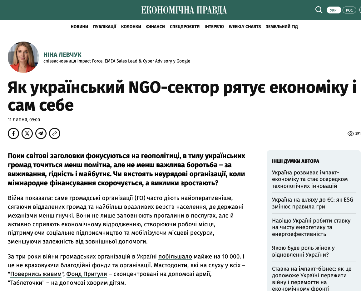УКРАЇНСЬКА НУО, ЗАСНОВАНА ТА ОЧОЛЮВАНА ЖІНКАМИ